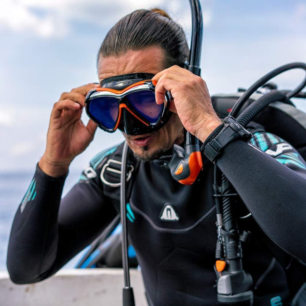 PARAGON DIVING MASK: FEATURES. TRI-MIX Frame. Three (3) distinct layers combined to produce one superior frame structure. Polyurethane (PuRiMaX) material bumper protection and a cross-beam metal frame structure combined with the superior toughness of the polycarbonate frame bolted together to create a seriously tough mask. Freedom Technology with Fit II. Freedom Technology is a set of technologies to enhance fit and performance exclusive to TUSA. Freedom model masks feature a dimpled skirt surface with varied silicone thicknesses and stability ridges in addition to a proprietary low-friction skirt surface on the fitting line. The new Fit II technology adds strength and rigidness to the skirt for use in tough environments. UV 420 Treatment. UV 420 protects against harmful high-energy visible (HEV) light. Ultraviolet (UV) light is dangerous. Although the dangers of UV are recognized, there is another type of dangerous light; High-Energy Visible (HEV) light. HEV light is not just present on sunny days, but overcast days as well. Therefore, it is extremely important to protect yourself against UV and HEV light in all weather conditions when diving. Quick-Adjust Buckle System. The Quick-Adjust Buckle System incorporates a newly-designed low-profile buckle. The result is a compact, lightweight, technologically advanced diving mask design that can be easily and quickly adjusted for a perfect fit. Offset Buckle. Raising the position of the Strap Adjuster improves comfort by preventing mask strap contact with the ear. Dimple Skirt. Dimples around key areas that allow for a greater seal, reduced pressure, and increased comfort. Stability Ridges. In order to minimize compression and leakage, stability ridges have been added to reinforce areas under the cheek bones to maintain ideal surface contact.